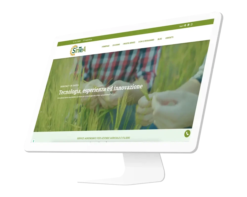 Il risultato? Uno dei progetti più rapidi mai realizzati: in soli sei giorni il sito era online, pronto e funzionante, rispecchiando perfettamente la filosofia del team Sintea. Un sito essenziale, chiaro e diretto, che trasmette la loro professionalità e li posiziona come partner affidabile per le aziende agricole che cercano competenza e visione innovativa.